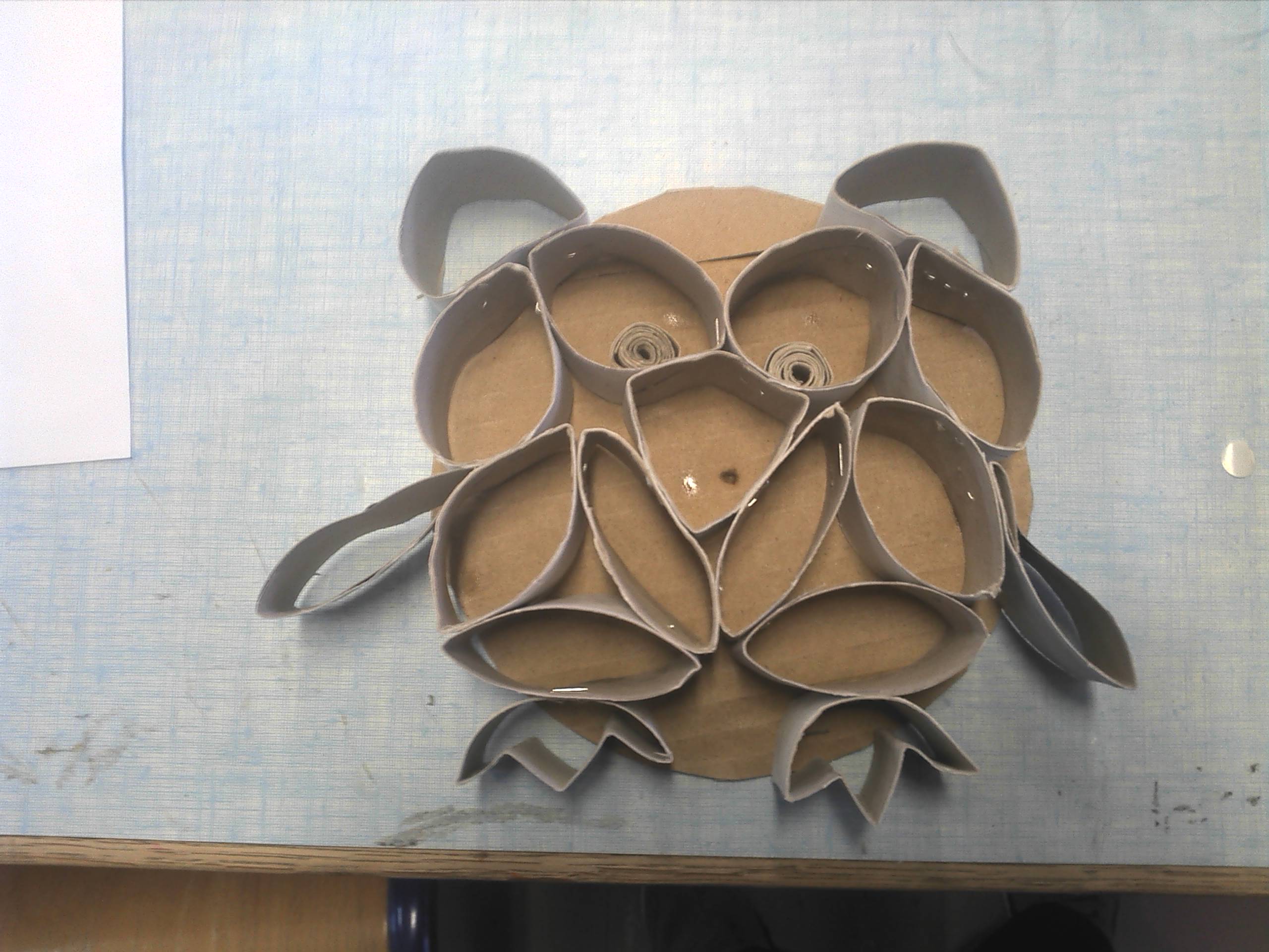 Fait avec des rouleaux de sopalin et de papier toilette.